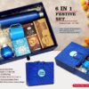 Festive Set of 7- Digital Clock With 10W Wireless Charger, Premium SS Mug, LED Light Diya Set of 6, Sugarfree Choco Chip Oat Cookies, Mexican Salsa Cashews, Belgian Rose Almonds, 2 Peanut Butter Cookies
