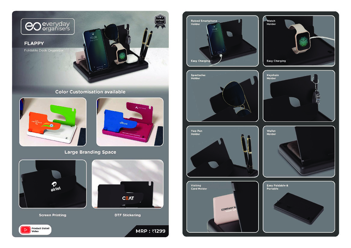 PowerGlow Dark Plate Mobile stand – With paper clip holder, visiting card holder and tumbler – Works on 2 x AA batteries