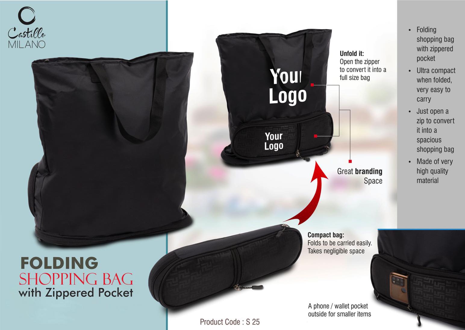 Folding shopping bag with Zippered pocket – Phone, wallet pocket outside