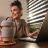 Insulated Eco Steel bottle with Rice husk outer body – Flip top cap with easy carry slot – 500 ml approx
