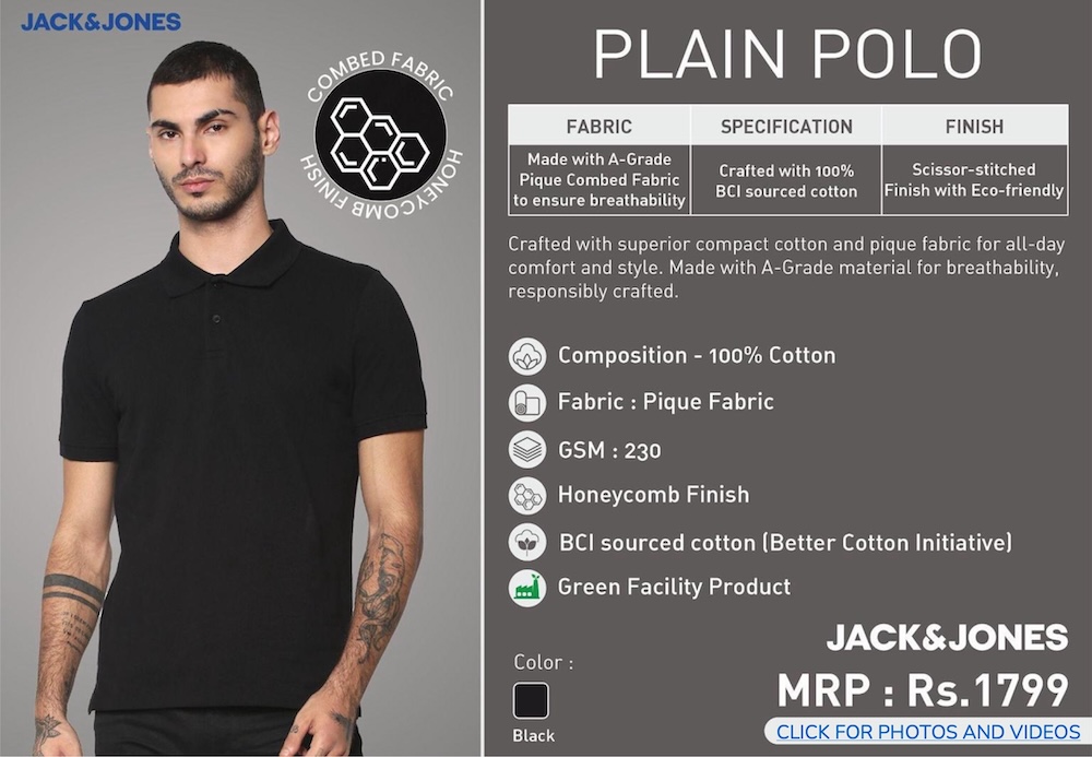 Jack & Jones Solid/Plain Polo Tshirt – Black
