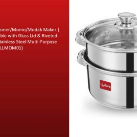 Lifelong 2-Tier Steamer/Momo/Modak Maker | Induction Compitable with Glass Lid & Riveted Handles | 20 cm Stainless Steel Multi-Purpose Cooking Steamer