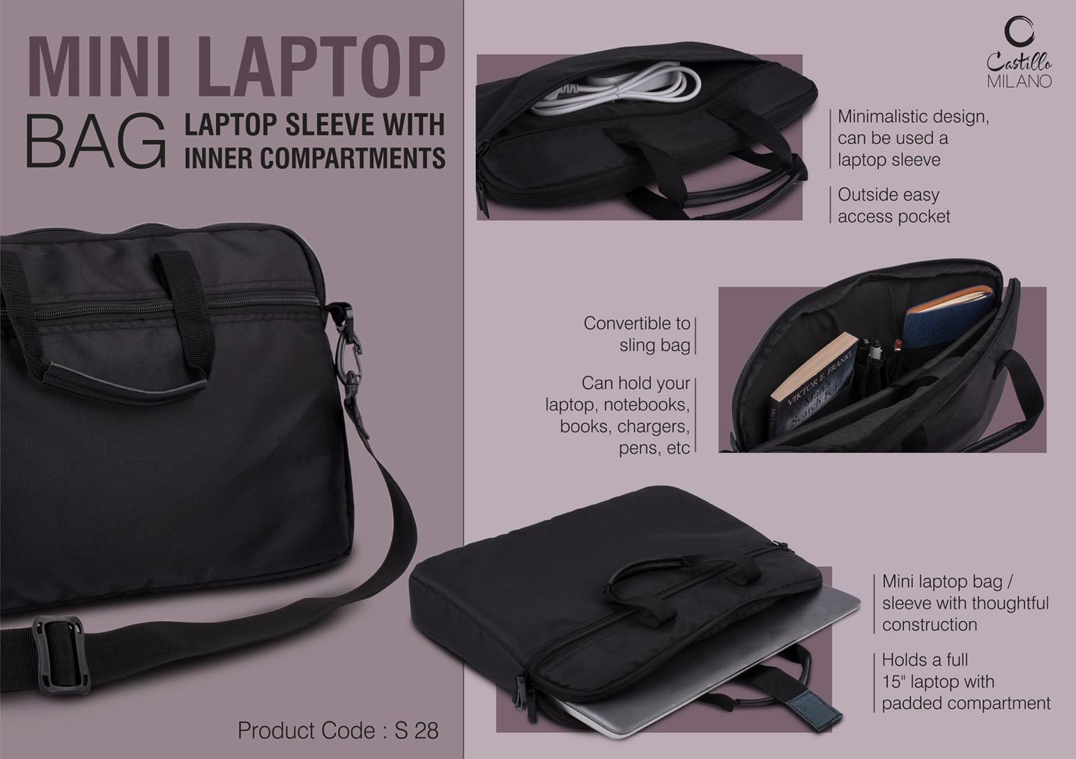 Mini Laptop bag / Laptop Sleeve with inner compartments – Convertible to Sling