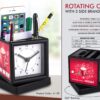 Rotating clock with 3 side branding area – Has pen stand and large stationery holder