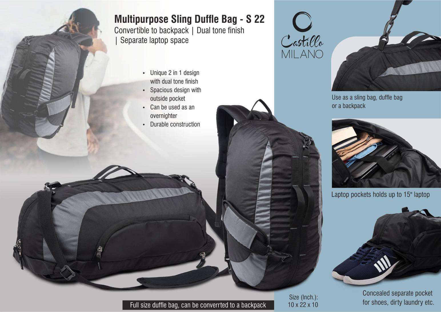 Multipurpose Sling Duffel Bag – Convertible to backpack – Dual tone finish – Separate laptop space