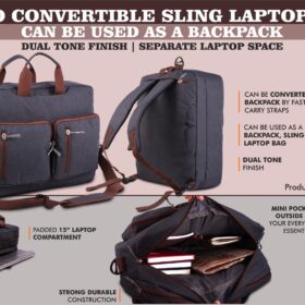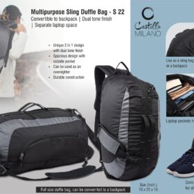 Multipurpose Sling Duffel Bag – Convertible to backpack – Dual tone finish – Separate laptop space