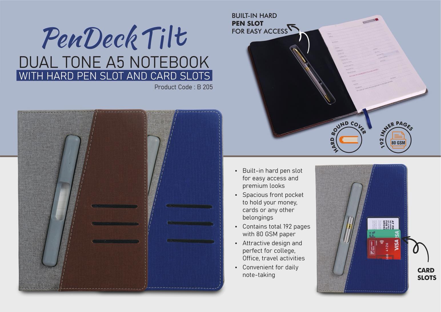 PenDeck Tilt- Dual tone A5 Notebook with Hard pen slot and card slots