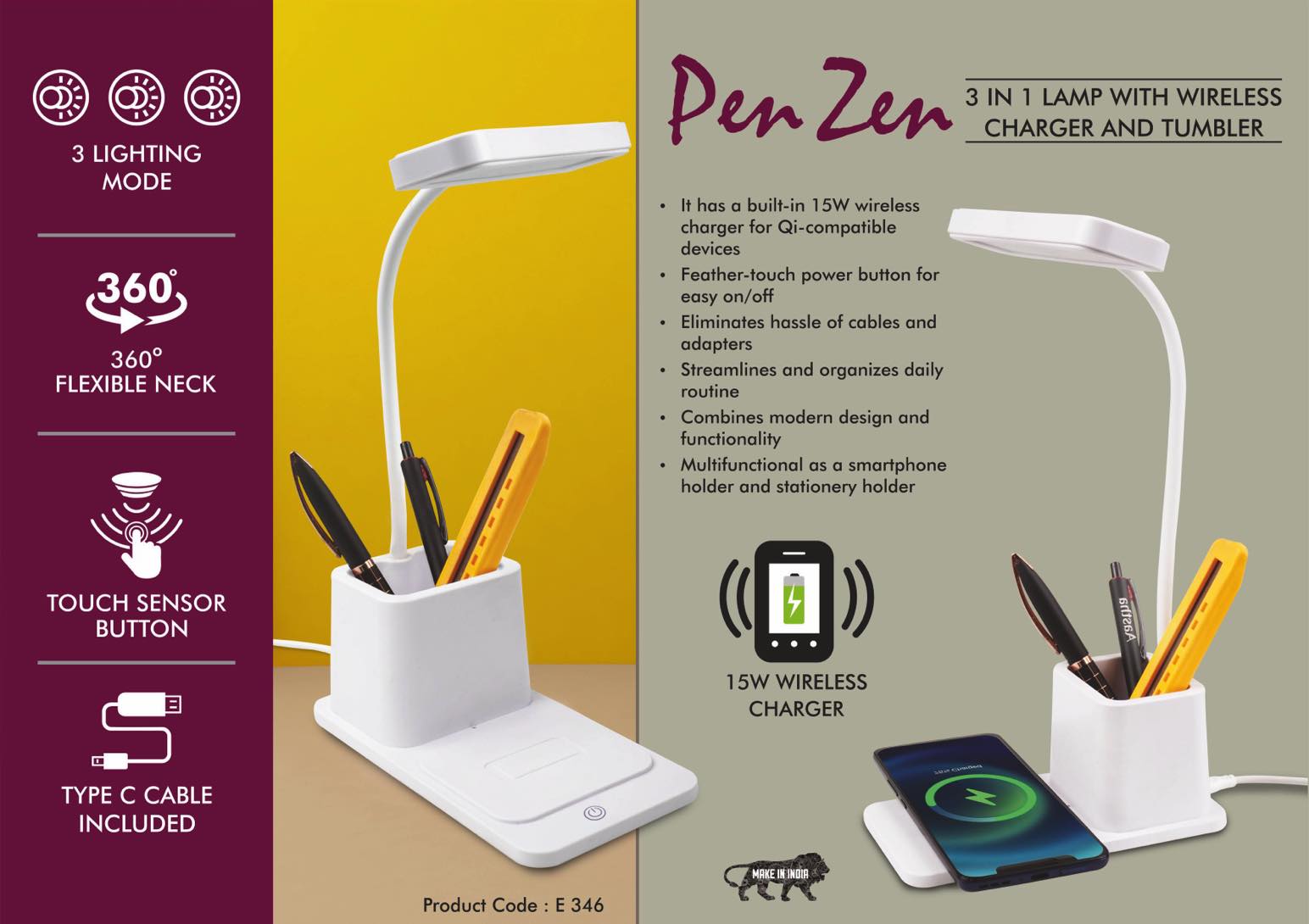 PenZen- 3 in 1 Lamp with 15W Wireless Charger and Tumbler