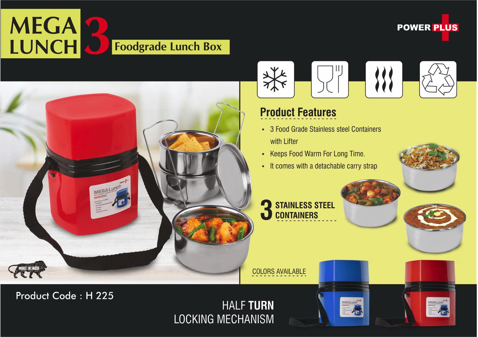 Power Plus Mega Steel Lunch Box- 3 Stainless steel containers with lifter