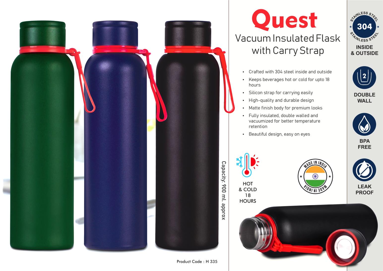 Quest 900ml Vacuum Insulated Flask with Carry Strap – 304 steel inside and outside – 18 hours hot-cold
