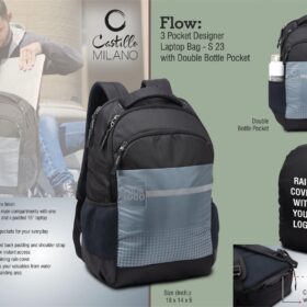 Flow- 3 pocket Designer laptop bag with double bottle pocket and rain cover