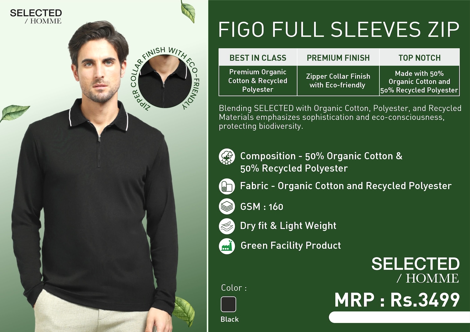 Selected Homme Figo Zip Long Sleeve Tshirt – Black