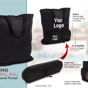 Folding shopping bag with Zippered pocket – Phone, wallet pocket outside