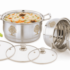 Lifelong 2-Tier Steamer/Momo/Modak Maker | Induction Compitable with Glass Lid & Riveted Handles | 20 cm Stainless Steel Multi-Purpose Cooking Steamer
