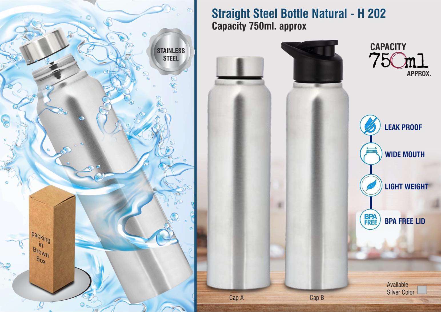 Straight steel single wall bottle Natural – Capacity 750ml approx