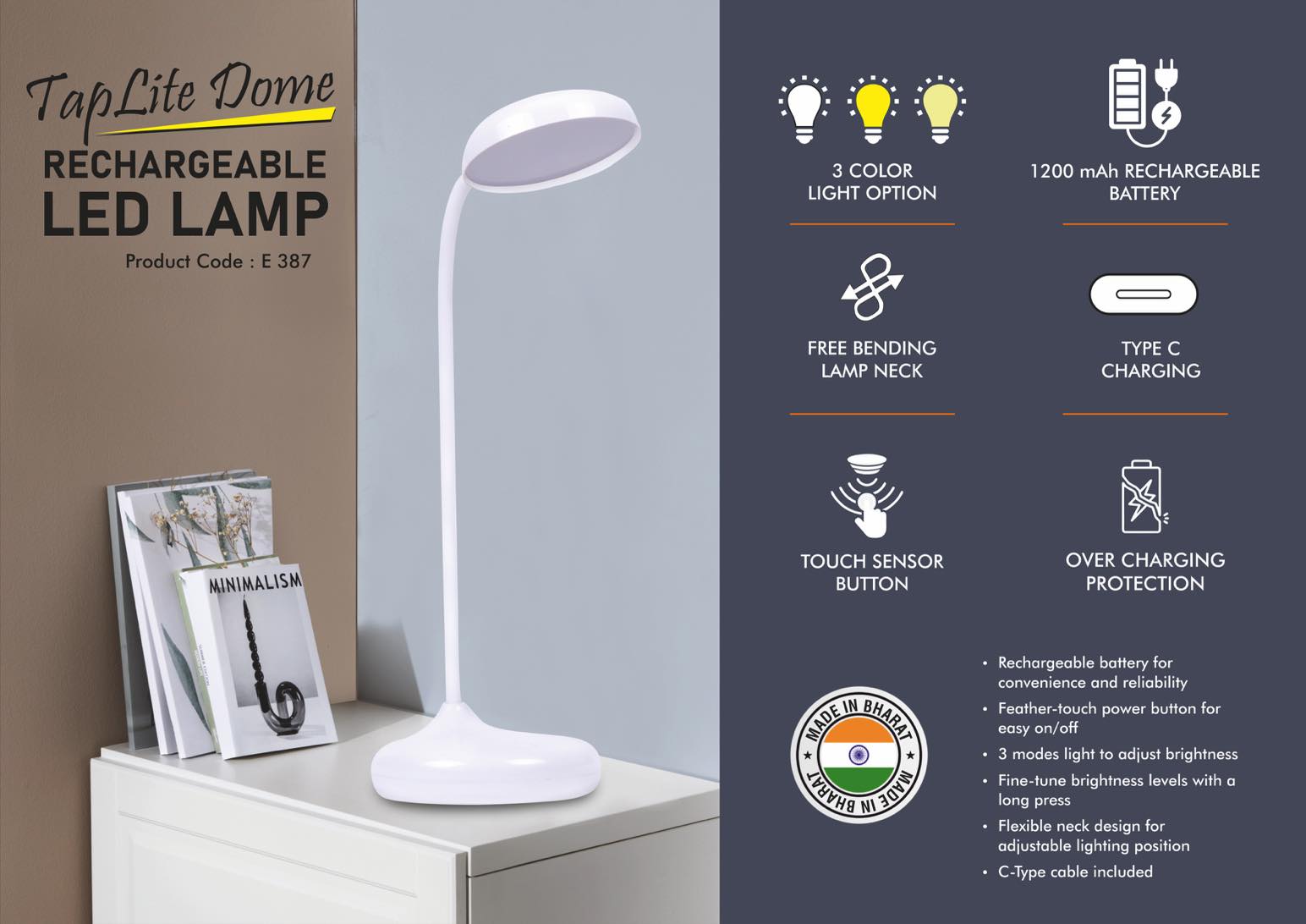 Add to Download BasketView BasketFind similar productsRechargeable Flexi table lamp with Mobile stand – 3 step dimmer control – Feather Touch button