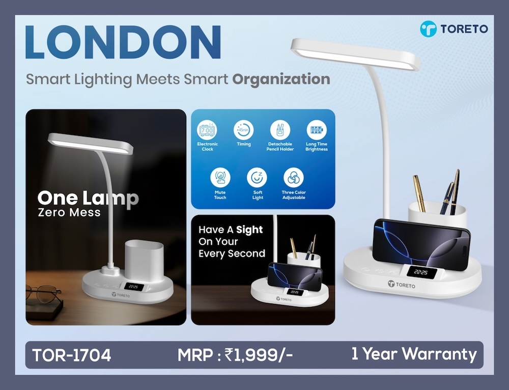 PowerGlow Dark Plate Mobile stand – With paper clip holder, visiting card holder and tumbler – Works on 2 x AA batteries