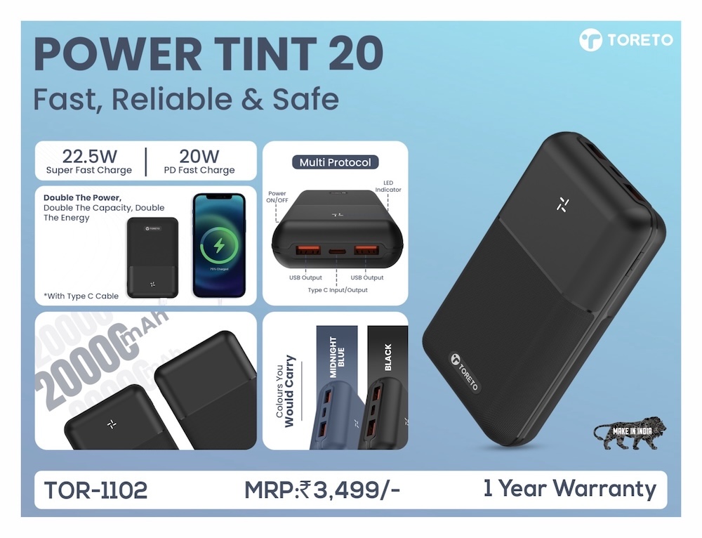 VoltX 10- 10,000 mAh Power bank with Display – 22.5W Fast charging – Supports Qualcomm 3.0 + PD charging – Dual USB output and inputs