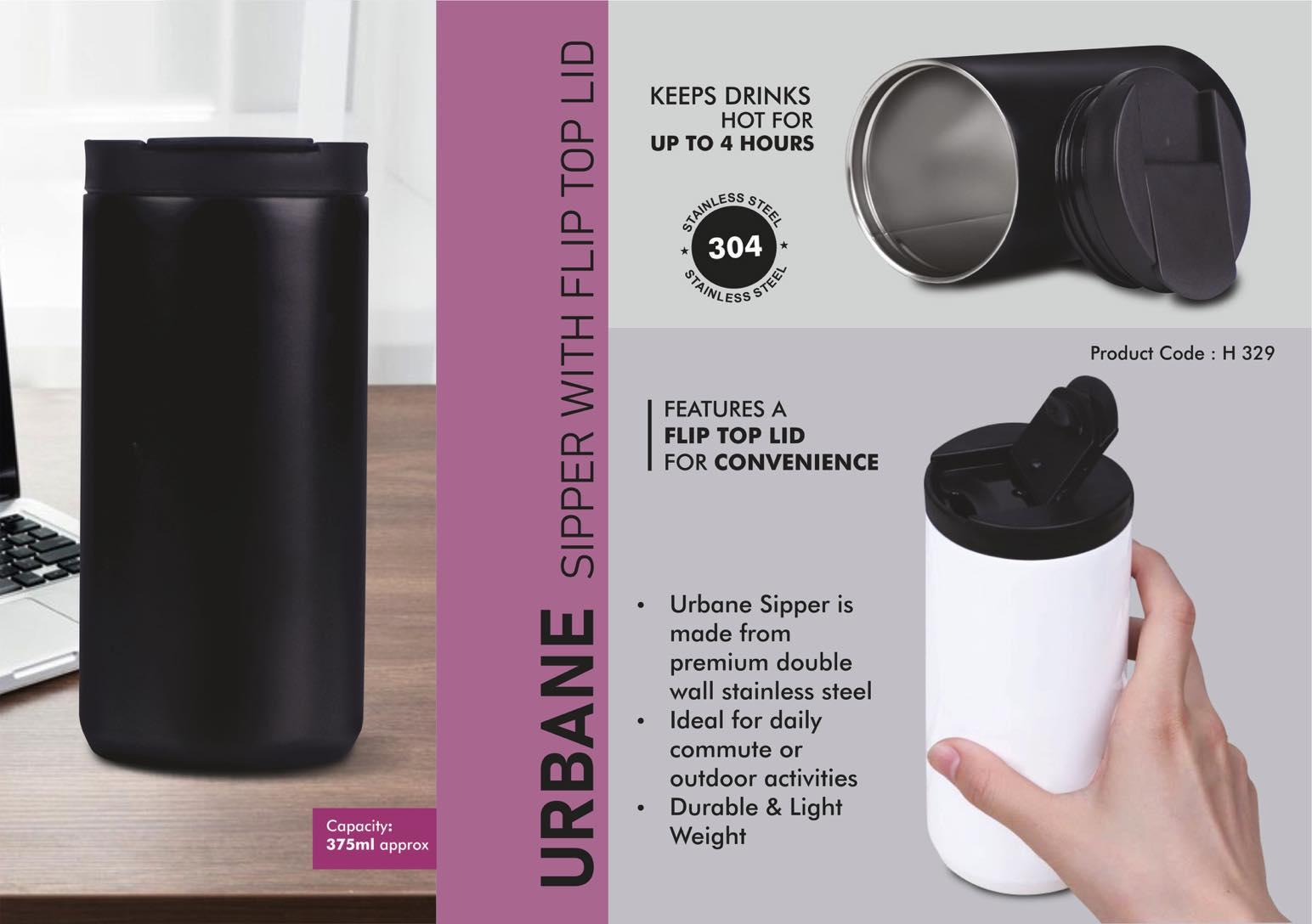 Urbane- Sipper with flip top lid – Keeps hot upto 6 hours – Capacity 350ml approx