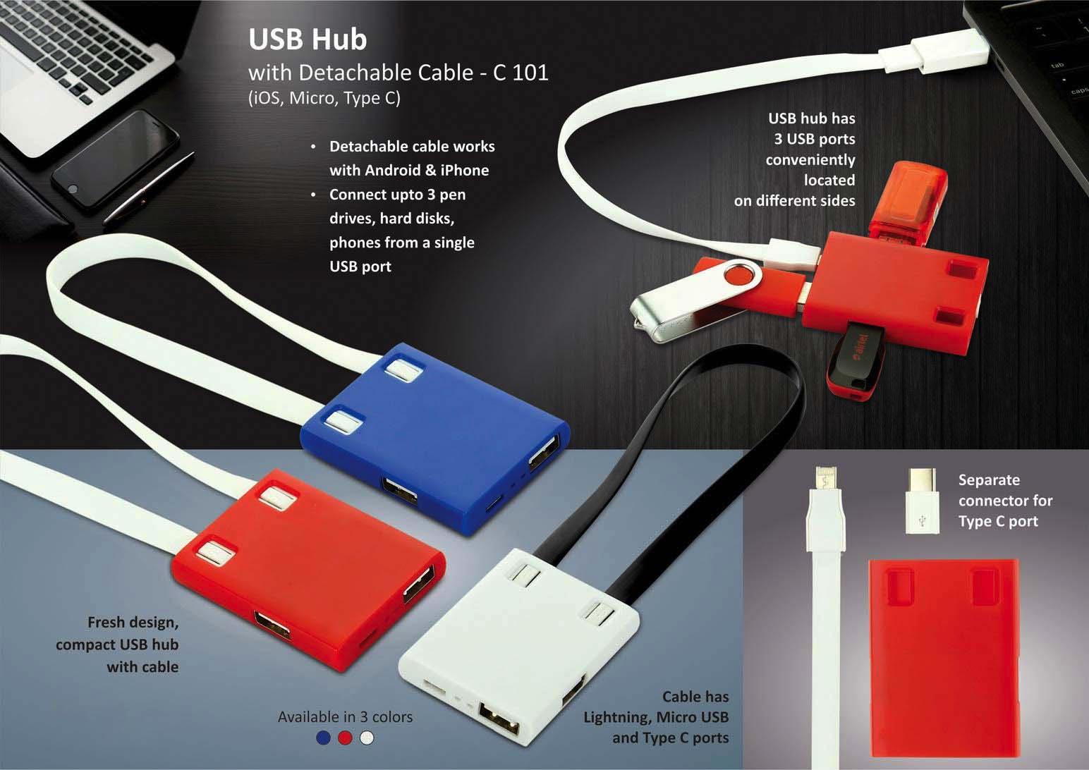 USB Hub with detachable cable (iOS, Micro, Type C) 3 USB ports