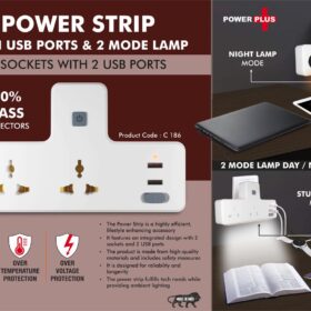 Power Strip with USB ports and Night Lamp – 2 sockets with 2 USB ports – 2 mode lamp