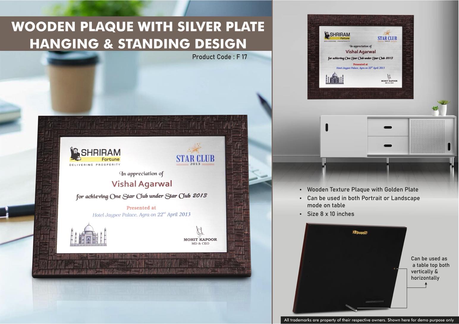 Wooden Plaque with Silver plate – Hanging and Standing design – 8 x 10