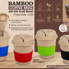 Bamboo Coffee mug: Eco friendly mug with flip top Lid and Anti-Scald sleeve – Capacity 250 ml